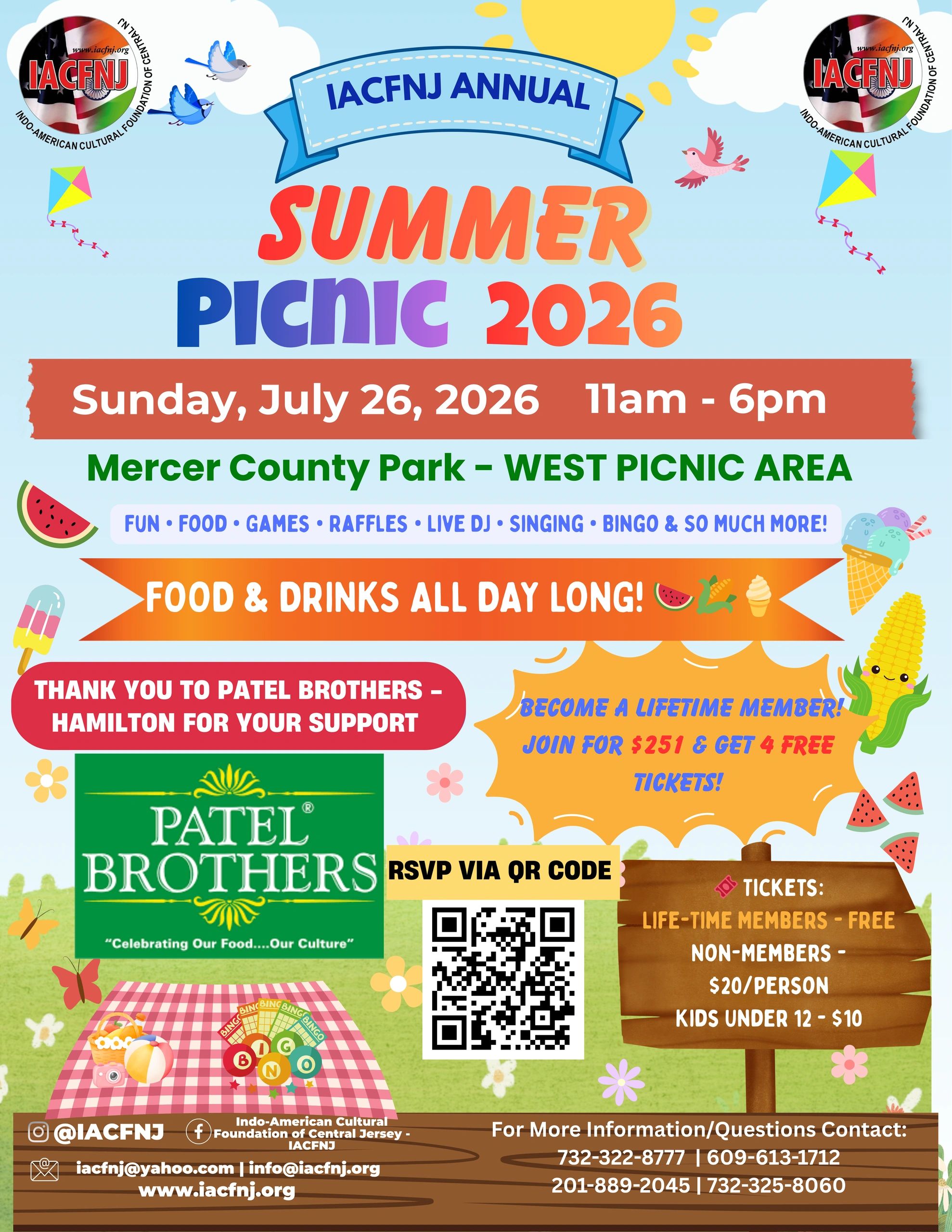IACFNJ organizes many community events which include Navratri Garba, Summer Picnic, India's Independence Day, Diwali Dinner, and various other cultural programs.